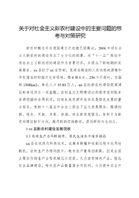 关于对社会主义新农村建设中的主要问题的思考与对策研究.docx