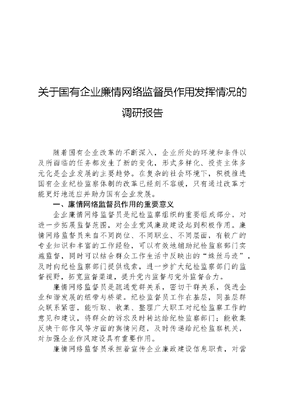 关于国有企业廉情网络监督员作用发挥情况的调研报告.docx