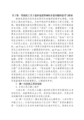 关于第一代农民工关于返乡还是留城的养老问题的思考与探索.docx