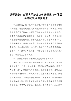 调研报告:全面从严治党主体责任压力传导层层递减的成因及对策.docx