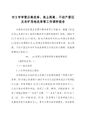 对X市审管分离改革、表土剥离、不动产登记及采矿用地改革等工作调研报告.doc