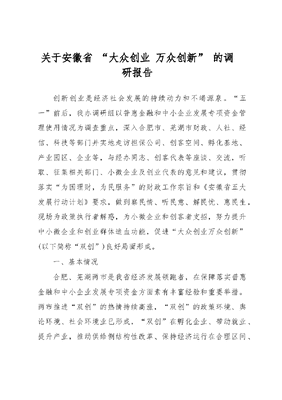 关于安徽省 “大众创业 万众创新” 的调研报告.docx