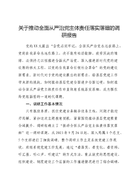 关于推动全面从严治党主体责任落实落细的调研报告.docx