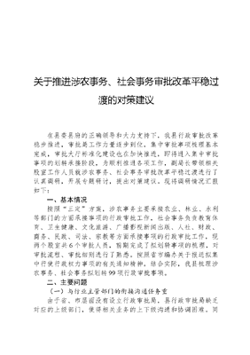 关于推进涉农事务、社会事务审批改革平稳过渡的对策建议.docx