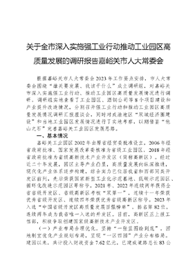 关于全市深入实施强工业行动推动工业园区高质量发展的调研报告嘉峪关市人大常委会.docx