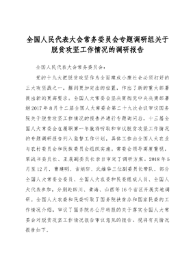全国人民代表大会常务委员会专题调研组 关于脱贫攻坚工作情况的调研报告.docx