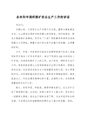 在耒阳市调研煤矿安全生产工作的讲话.doc