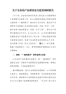 关于全市农产品质量安全监管调研报告.docx
