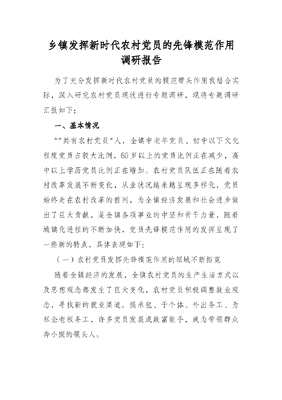 乡镇发挥新时代农村党员的先锋模范作用调研报告.docx