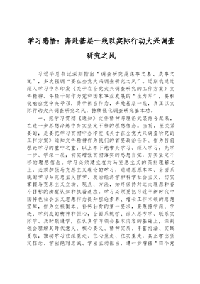 学习感悟:奔赴基层一线+以实际行动大兴调查研究之风.docx