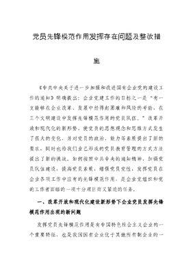 党员先锋模范作用发挥存在问题及整改措施.docx