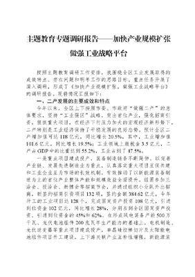 主题教育专题调研报告——加快产业规模扩张做强工业战略平台.docx