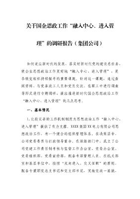 关于国企思政工作“融入中心、进入管理”的调研报告(集团公司).docx