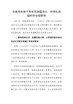 市委党校关于党校党建规范化、科学化路径的思考与探索.docx