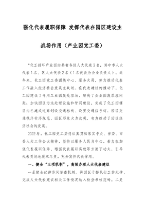 强化代表履职保障 发挥代表在园区建设主战场作用(产业园党工委).docx
