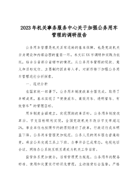 2023年机关事务服务中心关于加强公务用车管理的调研报告.docx