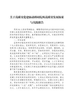 关于高质量党建驱动科研院所高质量发展探索与实践报告.docx
