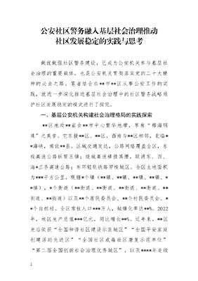 公安社区警务融入基层社会治理推动社区发展稳定的实践与思考.docx