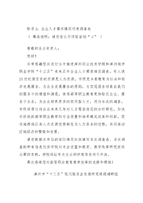 漳州市“十三五”现代服务业发展研究课题调研表.doc