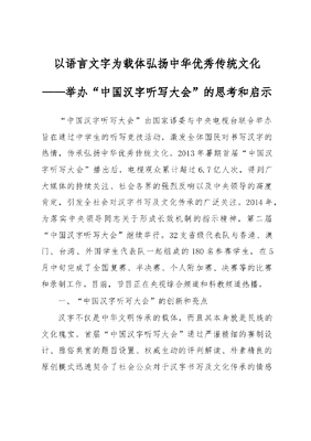 以语言文字为载体 弘扬中华优秀传统文化——举办“中国汉字听写大会”的思考和启示.docx