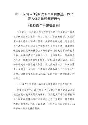 在“三全育人”综合改革中全面推进一体化育人体系建设调研报告(党校青年干部培训班).docx