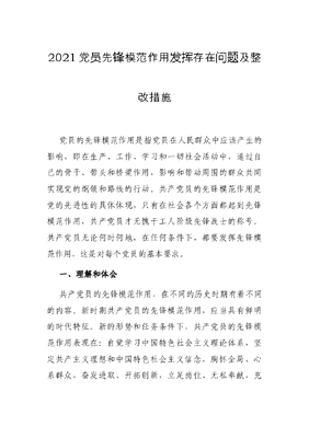 2021党员先锋模范作用发挥存在问题及整改措施.docx