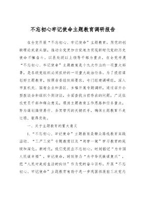 国有企业不忘初心牢记使命主题教育专题调研报告.docx