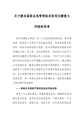 关于健全国家应急管理体系防范化解重大风险的思考.docx