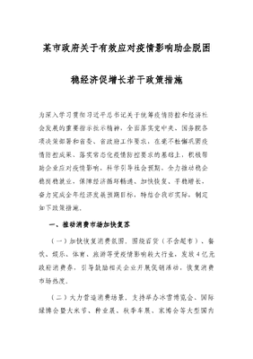某市政府关于有效应对疫情影响助企脱困稳经济促增长若干政策措施.docx