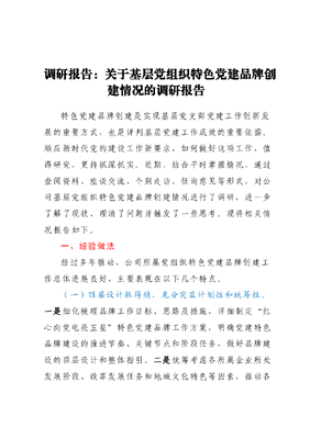 调研报告:关于基层党组织党建特色品牌创建情况的调研报告.docx