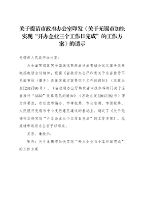 关于提请市政府办公室印发《关于无锡市加快实现“开办企业三个工作日完成”的工作方案》的请示.docx
