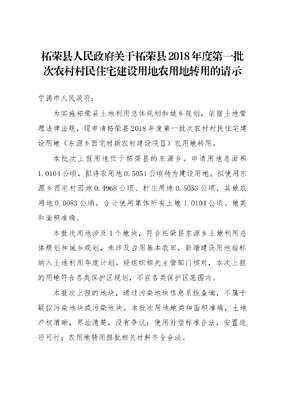 柘荣县人民政府关于柘荣县2018年度第一批次农村村民住宅建设用地农用地转用的请示.docx