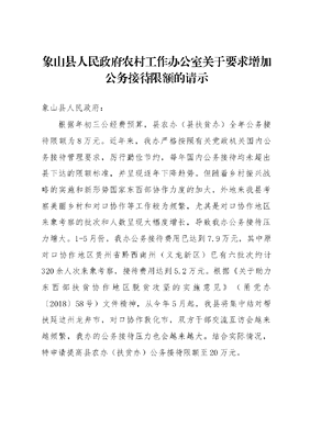 象山县人民政府农村工作办公室关于要求增加公务接待限额的请示(展示2).docx
