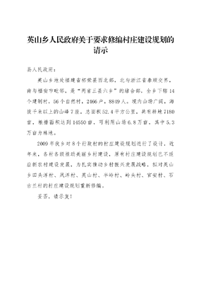 英山乡人民政府关于要求修编村庄建设规划的请示.docx