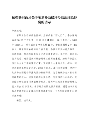 柘荣县财政局关于要求补助楮坪乡综治维稳经费的请示.docx