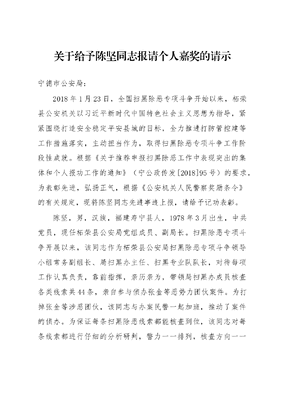 关于给予陈坚同志报请个人嘉奖的请示.docx