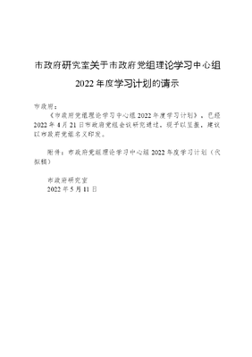 市政府研究室关于市政府党组理论学习中心组2022年度学习计划的请示.docx