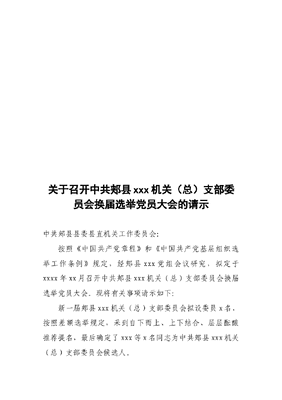 机关(总)支部委员会++++关于召开中共郏县xxx机关(总)支部委员会换届选举党员大会的请示.doc