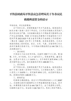 平舆县财政局+平舆县应急管理局关于冬春灾民救助所需资金的请示.docx