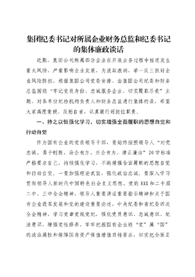 集团纪委书记对所属企业财务总监和纪委书记的集体廉政谈话.docx
