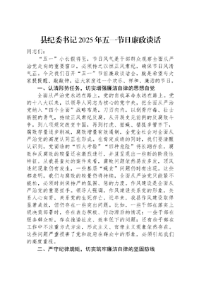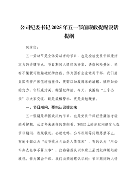 公司纪委书记2025年五一节前廉政提醒谈话提纲.docx