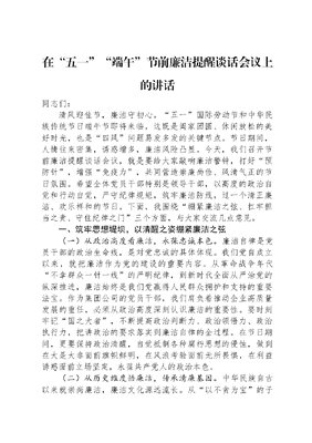 在“五一”“端午”节前廉洁提醒谈话会议上的讲话.docx