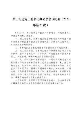 黄山街道党工委书记办公会会议纪要(2023年第23次).docx
