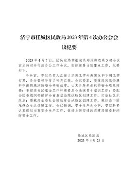 济宁市任城区民政局2023年第4次办公会会议纪要.docx
