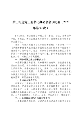 黄山街道党工委书记办公会会议纪要(2023年第39次).docx