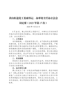 黄山街道党工委副书记、办事处主任办公会会议纪要(2023年第17次).docx