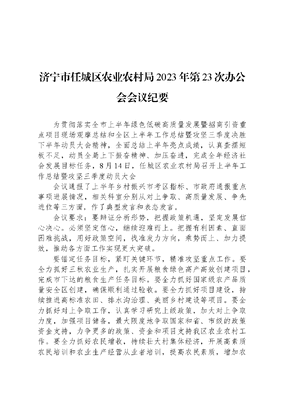 济宁市任城区农业农村局2023年第23次办公会会议纪要.docx