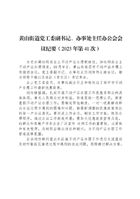 黄山街道党工委副书记、办事处主任办公会会议纪要(2023年第41次).docx