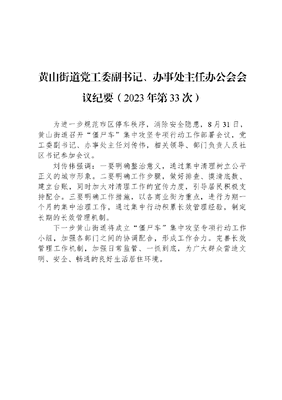 黄山街道党工委副书记、办事处主任办公会会议纪要(2023年第33次).docx