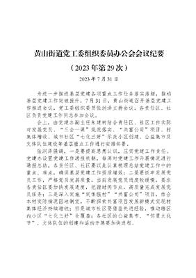 黄山街道党工委组织委员办公会会议纪要(2023年第29次).docx